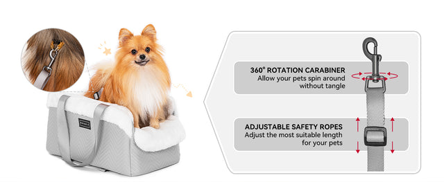 Drive with Less Distraction: This dog car seat features a larger pet harness hook, keeping your furry friend securely in place and reducing distractions while you drive. It also comes with comfortable shoulder straps for easy transport and a convenient pocket for your essentials.