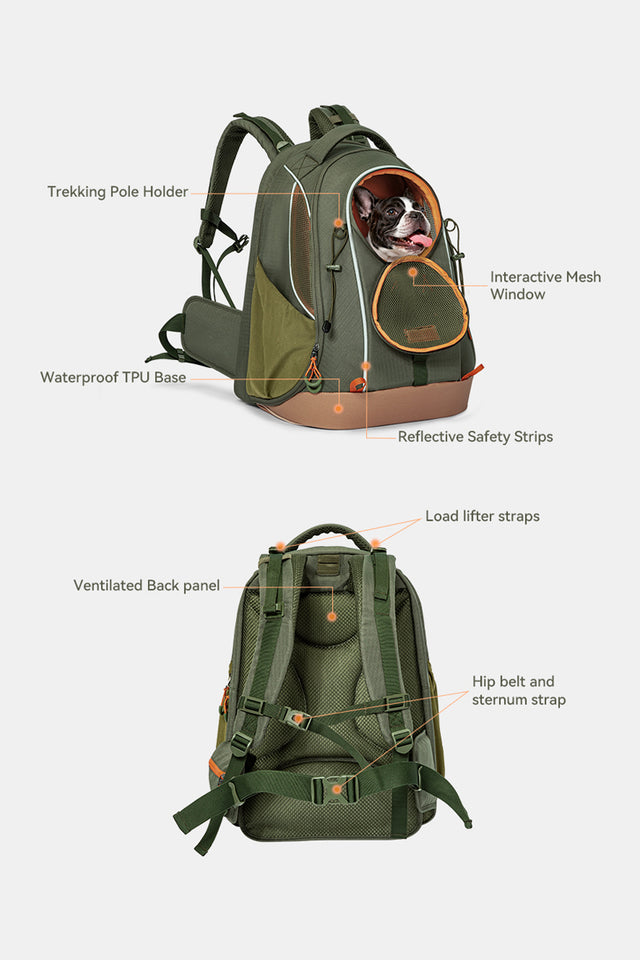 The PETSFIT WILDPATH Pet Carrier Backpack is built for outdoor enthusiasts who love to explore with their pets. A front mesh window lets your pup soak in the views. Body-contouring shoulder straps with adjustable sternum and waist belts help distribute weight evenly, reducing strain during long treks.