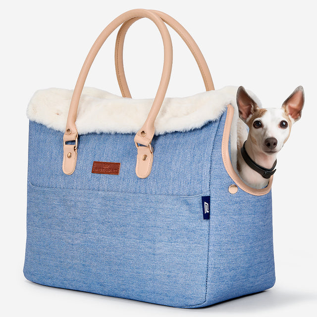 PETSFIT Vira Blazer Denim Pet Tote with White Sherpa Trim